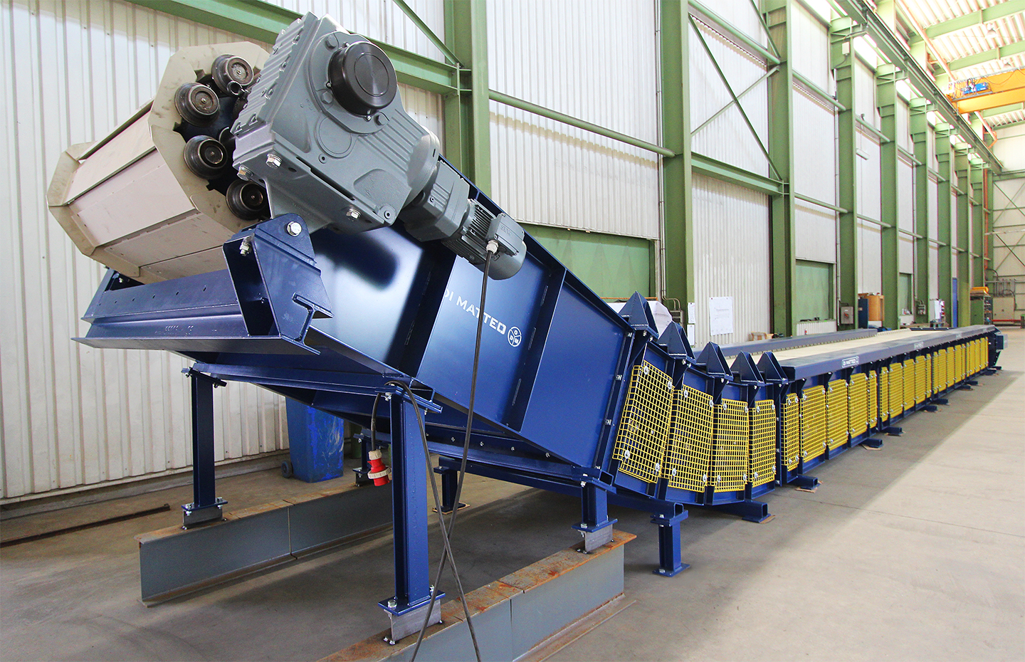 DI MATTEO apron conveyors can be used for the continuous conveying of bulk materials and piece goods with individual weights exceeding 1,000 kg. Based on system design and application requirements, they are also suitable for unloading and dosing tasks.