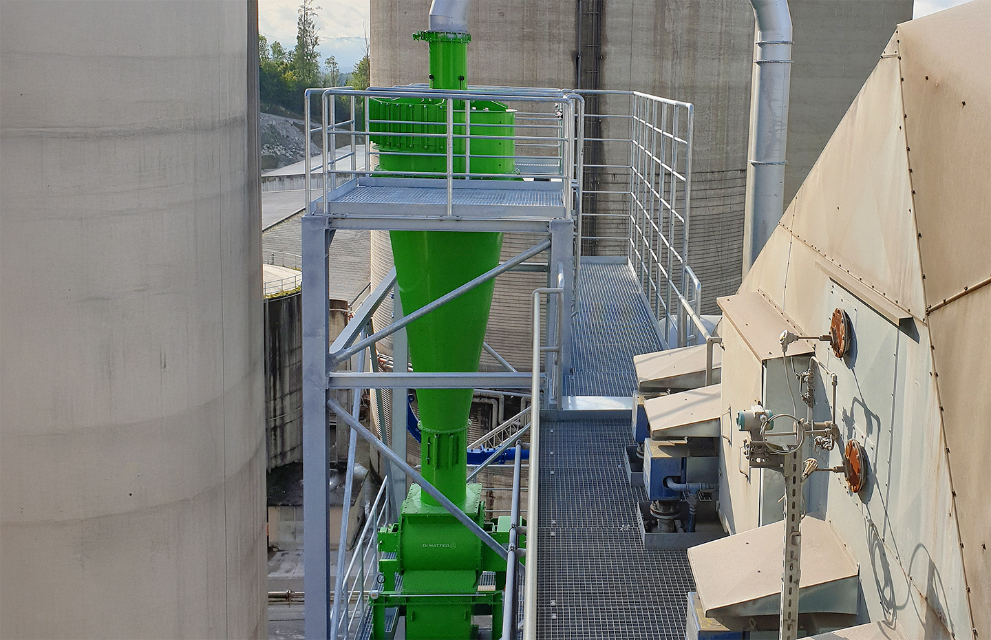 Pre-separation of coarse and powdery bulk materials in pneumatic conveying systems using DI MATTEO Cyclone Separators