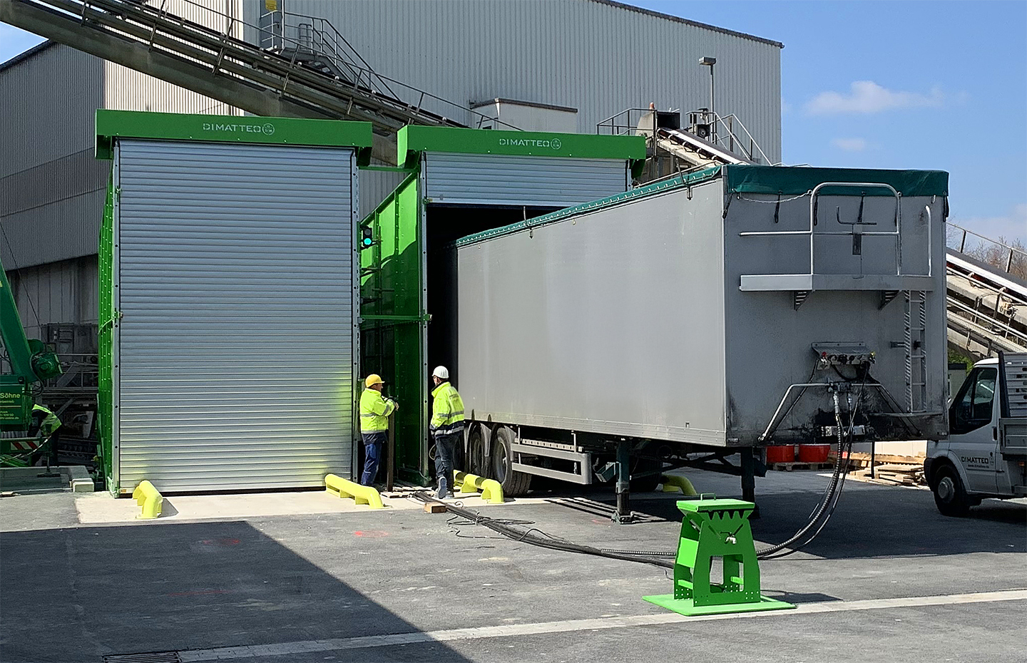 DI MATTEO Docking Stations provide a reliable and energy-efficient solution for handling a wide range of bulk materials. The integrated screw discharge floor ensures a uniform material flow, reduces the risk of bridging and segregation, and minimises residual material – supporting high process efficiency with low operating costs. Optional dust extraction systems contribute to a clean working environment, while an integrated traffic light system enables a controlled and coordinated delivery process.