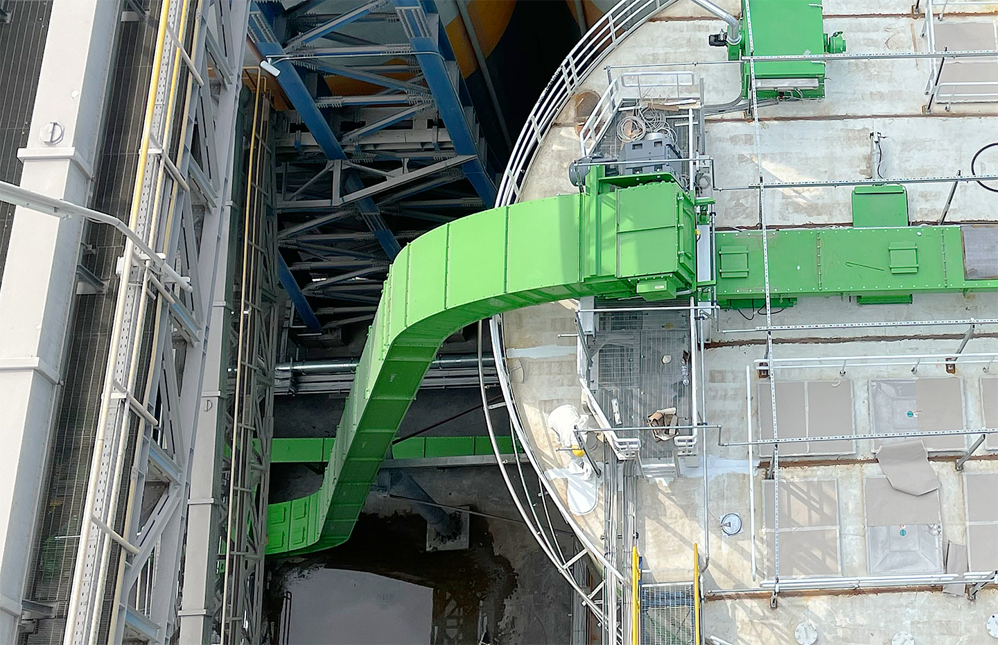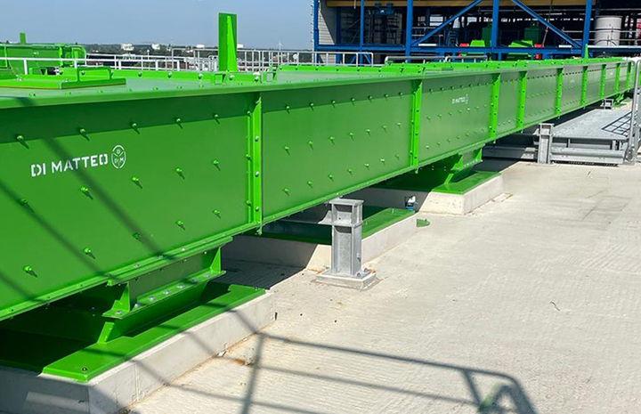 DI MATTEO Drag Chain Conveyors enable continuous and uniform conveying of bulk materials within an enclosed design. This construction supports low-dust operation and reliably protects the conveyed material, the plant environment and operating personnel.