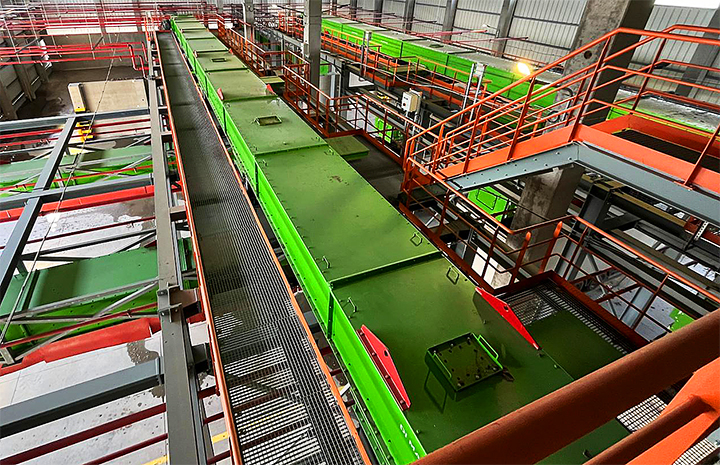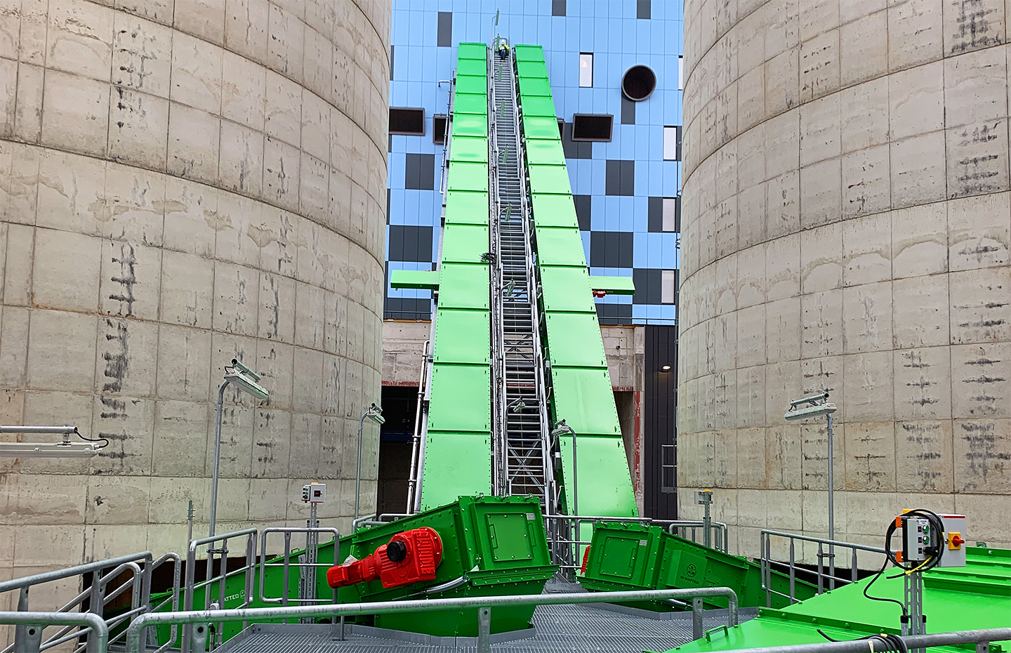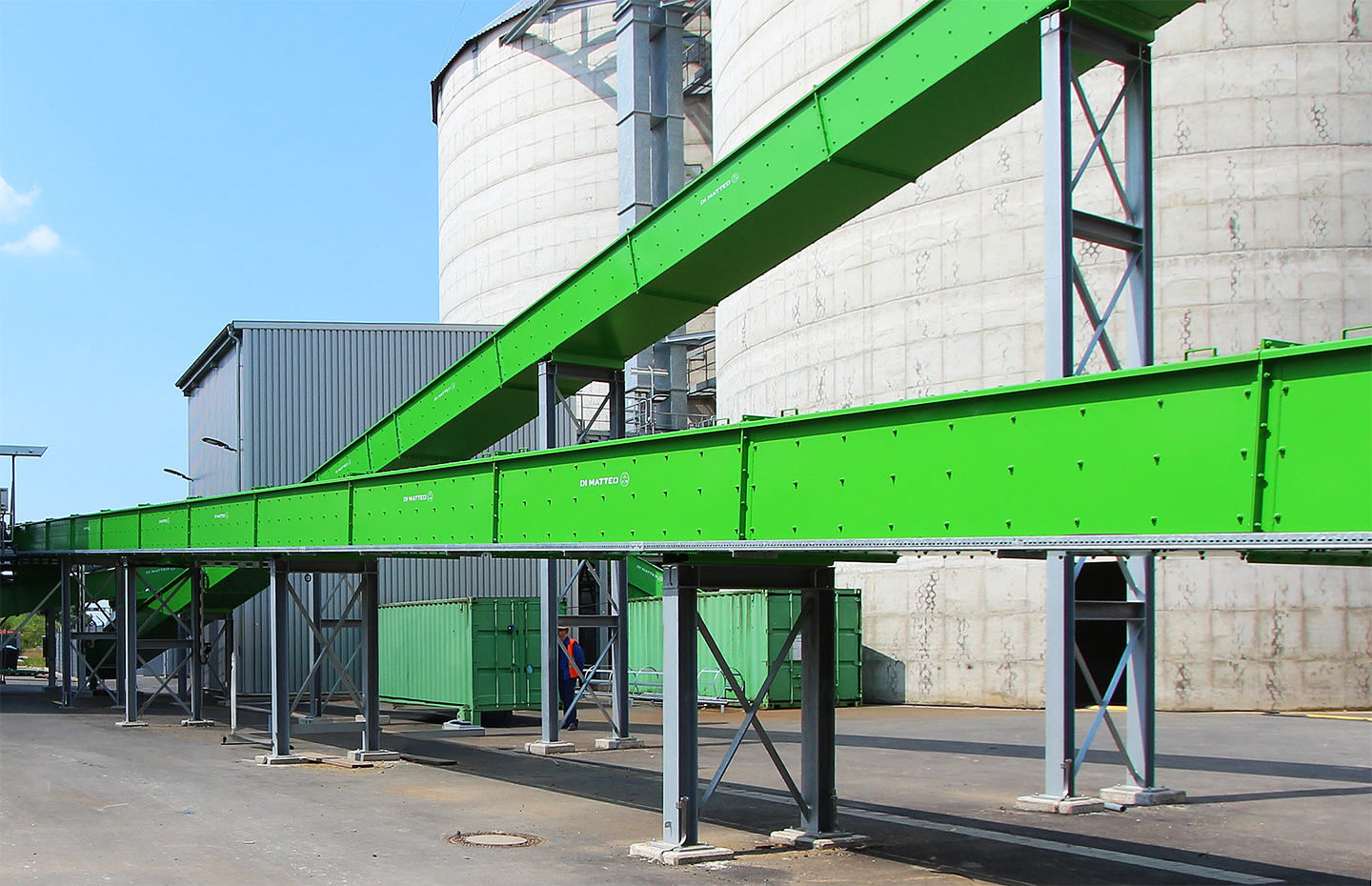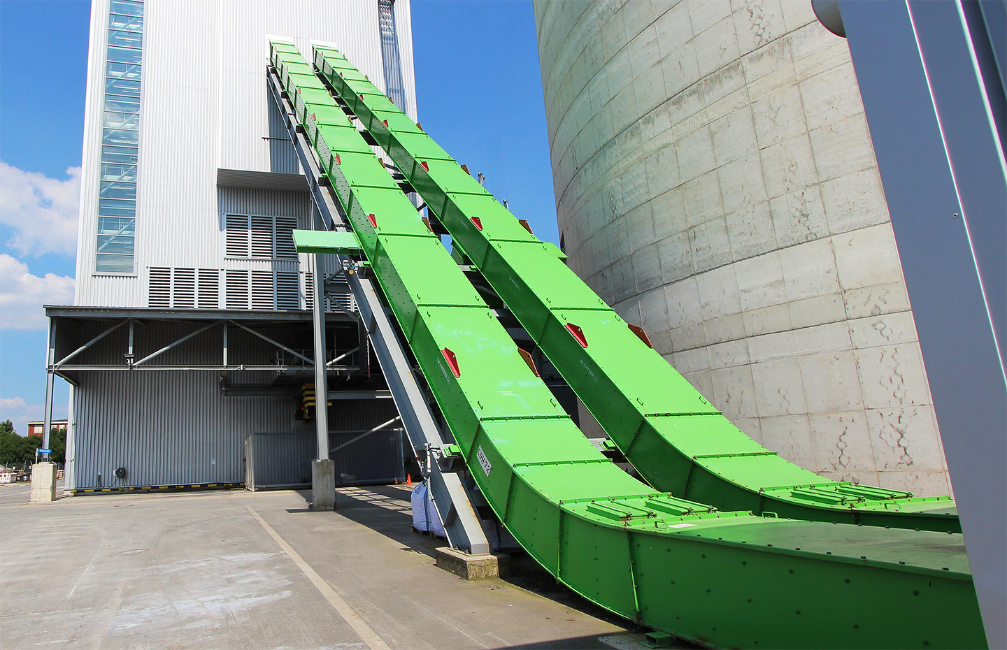 Reliable and continuous horizontal to steep conveying of bulk materials with DI MATTEO Drag Chain Conveyors