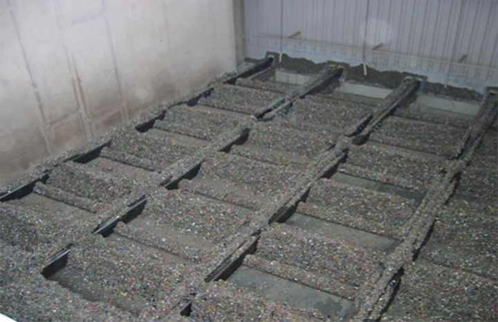 The DI MATTEO Discharge System PushFLOOR enables continuous discharge of poor-flowing materials, such as alternative fuels, from rectangular bunkers and round silos. The stepwise movement of the floor units conveys the bulk material towards the discharge opening in a controlled manner. Uniform activation of the storage area reduces bridging and inactive zones, supporting controlled emptying of large material volumes.