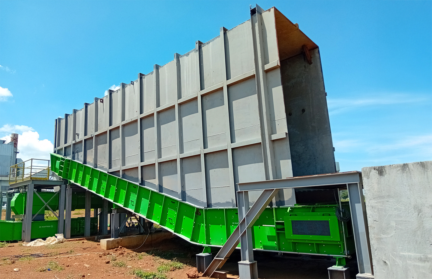 Fast unloading and efficient conveying of coarse and poorly flowing bulk materials and piece goods with the DI MATTEO surface feeder